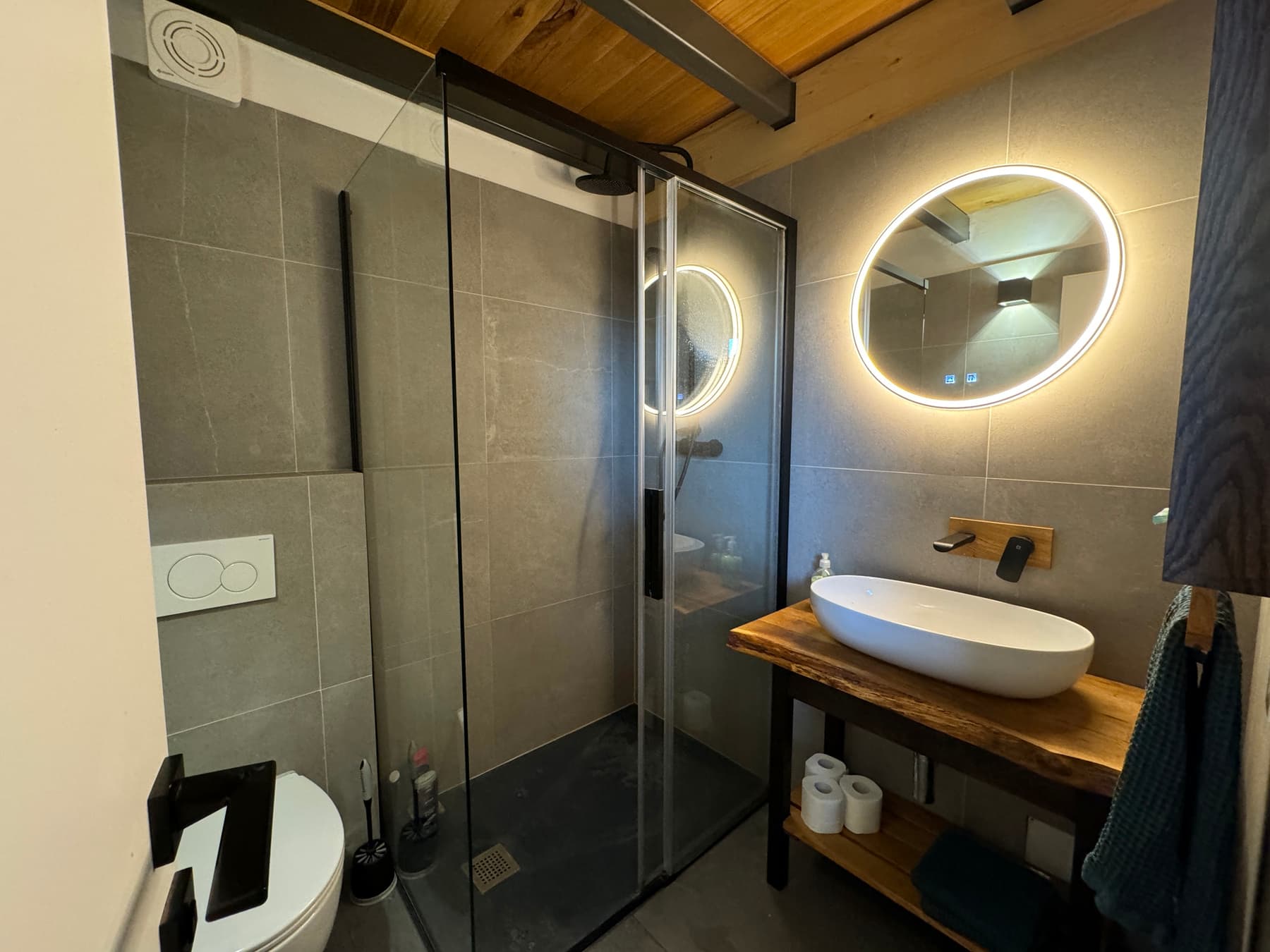 Ta samostojen apartma v prizidku nudi popolno udobje z ločenim vhodom in izhodom na teraso, ki je povezana z notranjim dvoriščem – borjačem. Čudovito prenovljeni prostori združujejo tradicionalno kraško arhitekturo s sodobnimi elementi, pri čemer les igra ključno vlogo.