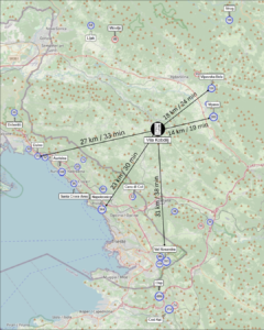Vila Kobdilj 1835 leži skoraj v samem središču enega najbolj raznolikih plezalnih območij v tem delu Evrope – od strmin nad Vipavsko dolino do sončnih sten nad morjem. V radiju 15–30 minut vožnje se odpirajo plezališča za vse – od prvih korakov do resnih projektov.